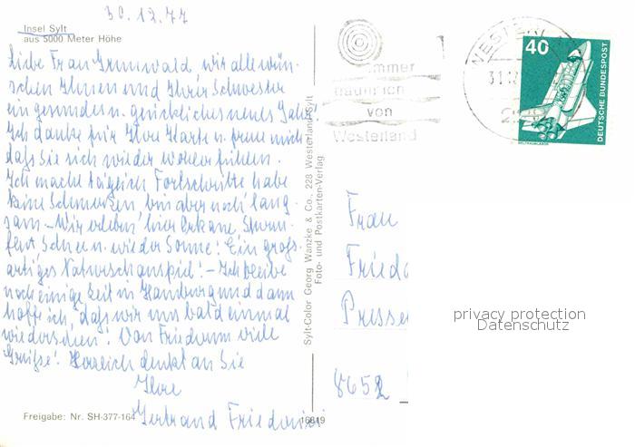 72638113 alte Postkarte Insel Sylt Fliegeraufnahme postalisch gelaufen Erhaltung siehe scans [WerneD78] KatCode: 11110001054151