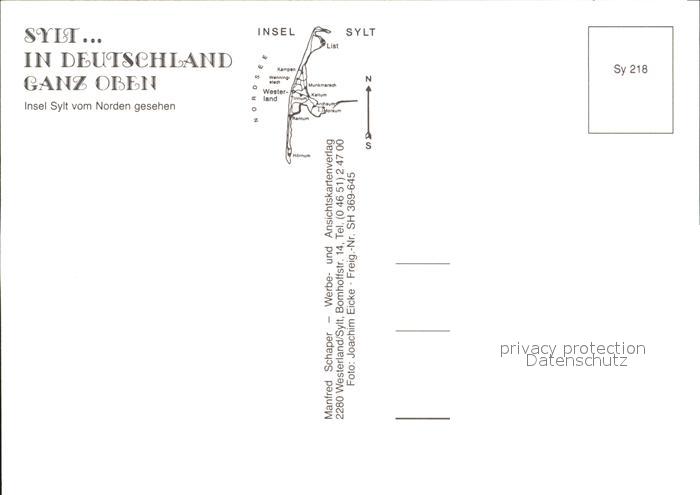 72240243 Insel Sylt Fliegeraufnahme postalisch nicht gelaufen Erhaltung siehe scans KatCode: 11110001054151
