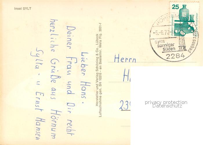 73686637 alte Postkarte Insel Sylt Fliegeraufnahme postalisch gelaufen Erhaltung siehe scans [WerneD78] KatCode: 11110001054151