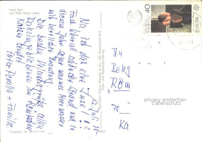 72064878 alte Postkarte Insel Sylt Fliegeraufnahme aus 5000 Meter Hoehe postalisch gelaufen Erhaltung siehe scans KatCode: 11110001054151