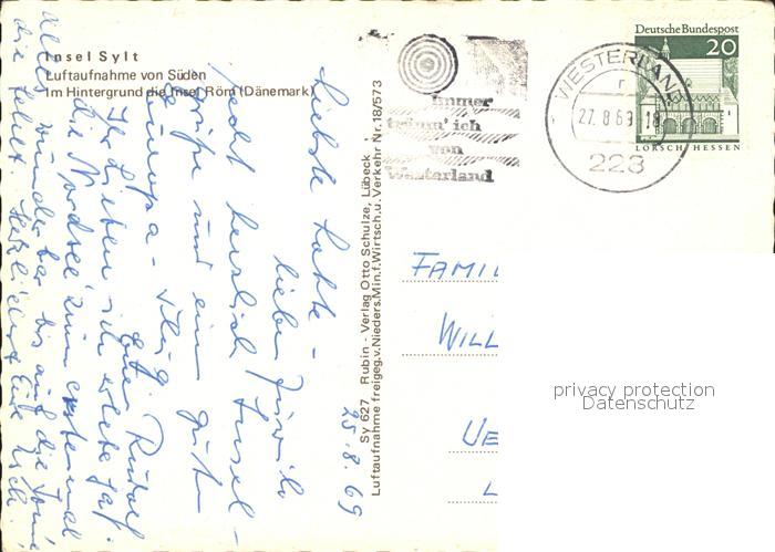 71892806 alte Postkarte Insel Sylt Fliegeraufnahme im Hintergrund Insel Roem Daenemark postalisch gelaufen KatCode: 11110001054151