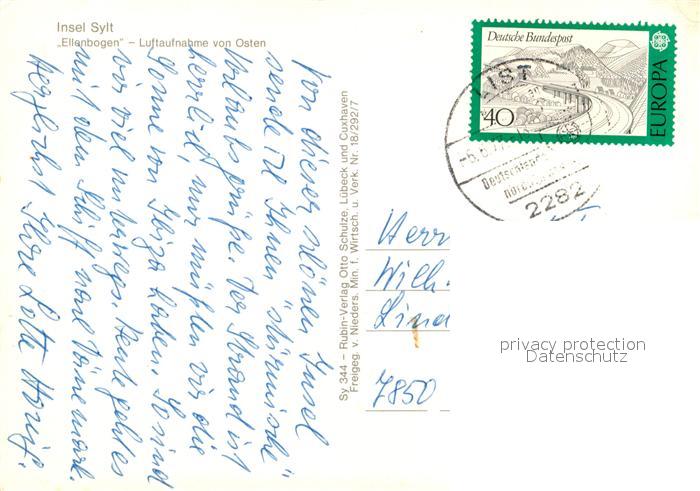 73335174 alte Postkarte Insel Sylt Fliegeraufnahme mit Ellenbogen postalisch gelaufen Erhaltung siehe scans [WerneD78] KatCode: 11110001054151