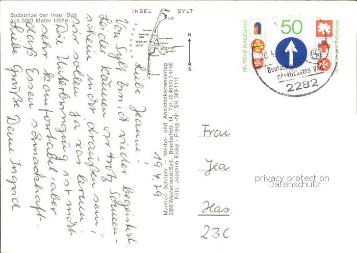 71958363 alte Postkarte Insel Sylt Fliegeraufnahme Suedspitze postalisch gelaufen Erhaltung siehe scans KatCode: 11110001054151
