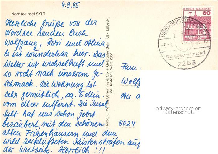 73158799 alte Postkarte Insel Sylt Fliegeraufnahme Wappen Duenen Strand Friesenhaeuser Sonnenuntergang postalisch gelaufen Erhaltung siehe scans [FriedD77] KatCode: 11110001054151