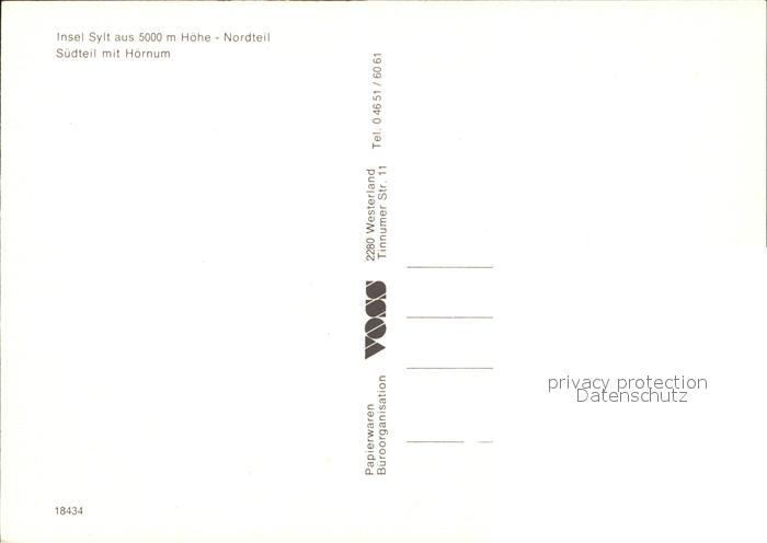 72429665 Insel Sylt Fliegeraufnahmen Nordteil und Suedteil mit Hoernum postalisch nicht gelaufen Erhaltung siehe scans KatCode: 11110001054151