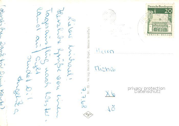 73168592 alte Postkarte Insel Sylt Friesenhaeuser Inselbahn Hafen Hoernum Duenen Springflut postalisch gelaufen Erhaltung siehe scans [WerneD78] KatCode: 11110001054151