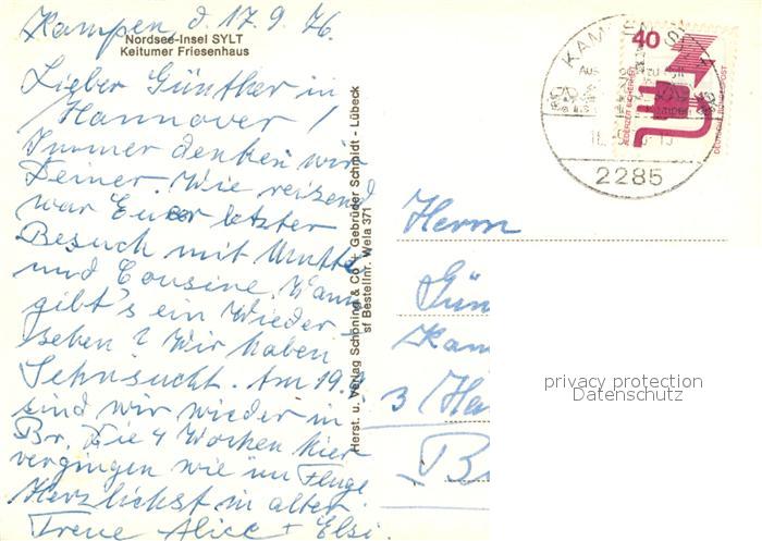 73160263 alte Postkarte Insel Sylt Keitumer Friesenhaus postalisch gelaufen Erhaltung siehe scans [KathaD81] KatCode: 11110001054151