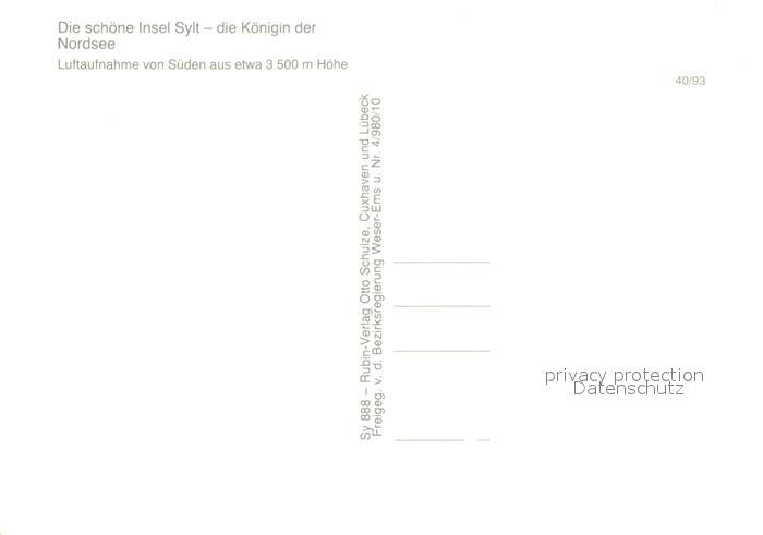 73170459 Insel Sylt Koenigin der Nordsee Luftaufnahme aus etwa 3500 m Hoehe Wappen postalisch nicht gelaufen Erhaltung siehe scans [FriedD77] KatCode: 11110001054151