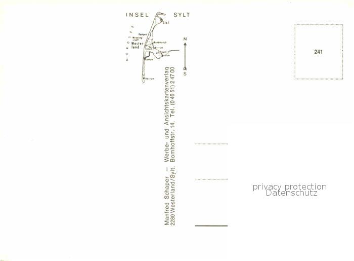 72857027 Insel Sylt Landkarte postalisch nicht gelaufen Erhaltung siehe scans [FriedD77] KatCode: 11110001054151