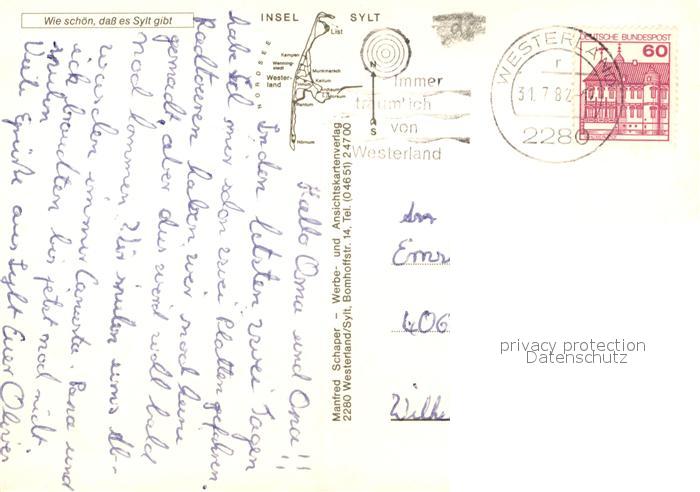 73158764 alte Postkarte Insel Sylt Landkarte Impressionen der Nordseeinsel postalisch gelaufen Erhaltung siehe scans [FriedD77] KatCode: 11110001054151