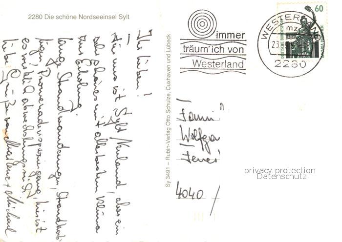 73158818 alte Postkarte Insel Sylt Leuchtturm Rotes Kliff Strand Promenade Friesenhaus Nationalflaggen Erdkugel postalisch gelaufen Erhaltung siehe scans [FriedD77] KatCode: 11110001054151