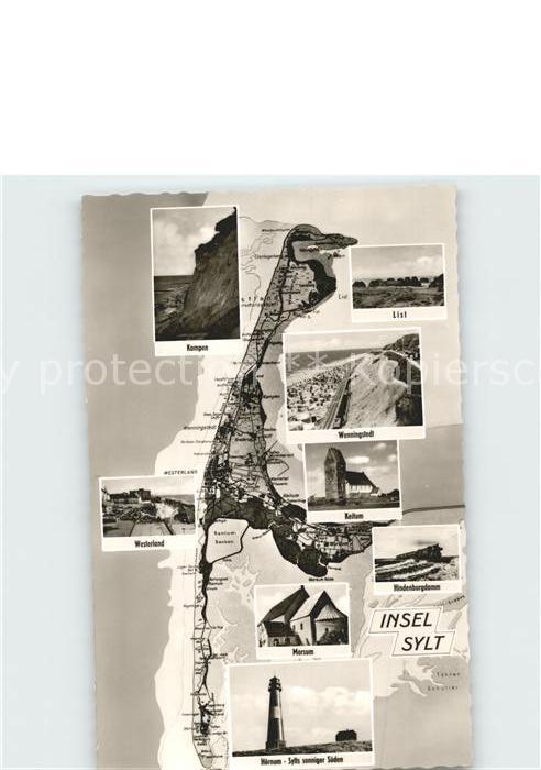 72077148 Insel Sylt mit Kampen List Wenningstedt Westerland Keitum Morsum Hoernum Hindenburgdamm Lageplan postalisch nicht gelaufen Erhaltung siehe scans KatCode: 11110001054151