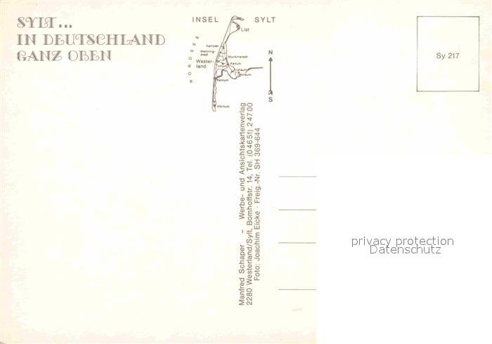 72779714 Insel Sylt Nordseeinsel Fliegeraufnahme postalisch nicht gelaufen Erhaltung siehe scans [FriedD77] KatCode: 11110001054151