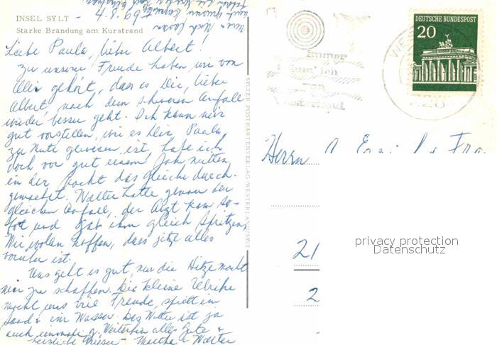 72787974 alte Postkarte Insel Sylt Starke Brandung am Kurstrand postalisch gelaufen Erhaltung siehe scans [FriedD77] KatCode: 11110001054151