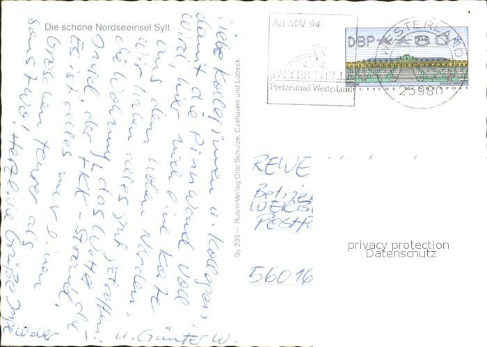 72323018 alte Postkarte Insel Sylt Strand Friesenhaeuser Leuchtturm Suedspitze postalisch gelaufen Erhaltung siehe scans KatCode: 11110001054151