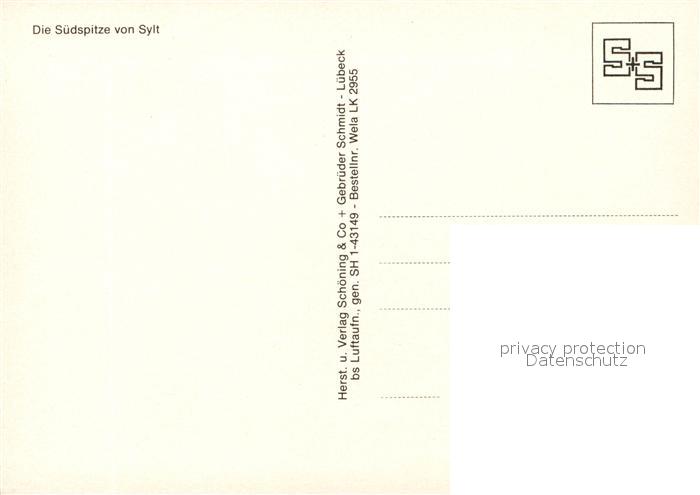 73295558 Insel Sylt Suedspitze Nordseeinsel Fliegeraufnahme postalisch nicht gelaufen Erhaltung siehe scans [FriedD77] KatCode: 11110001054151