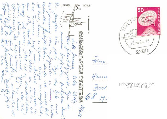 72707645 alte Postkarte Insel Sylt Teilansichten Kuestenorte Strand Sonnenuntergang Duenen Landkarte postalisch gelaufen Erhaltung siehe scans [FriedD77] KatCode: 11110001054151
