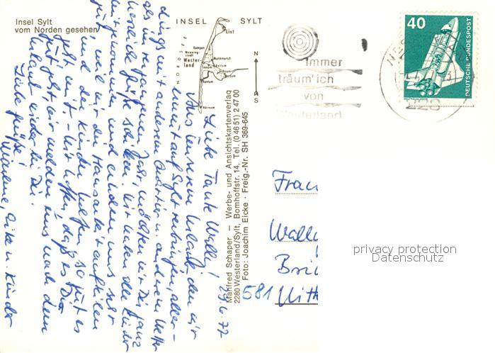 73600004 alte Postkarte Insel Sylt von Norden gesehen Fliegeraufnahme postalisch gelaufen Erhaltung siehe scans [FriedD77] KatCode: 11110001054151