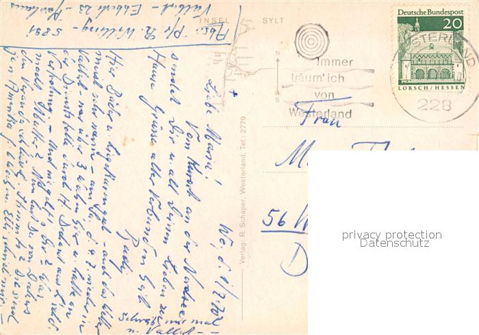 73296608 alte Postkarte Insel Sylt Westerland Duenen Hoernum Fischerhafen Hindenburgdamm Sonnenuntergang List Rotes Kliff Kampen postalisch gelaufen Erhaltung siehe scans [FriedD77] KatCode: 11110001054151