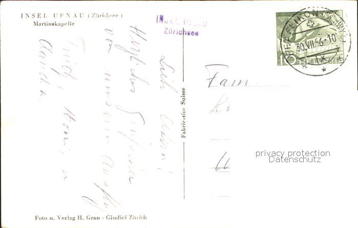 11960800 alte Postkarte Insel Ufnau Martinskapelle postalisch gelaufen Erhaltung siehe scans KatCode: 11470260925666