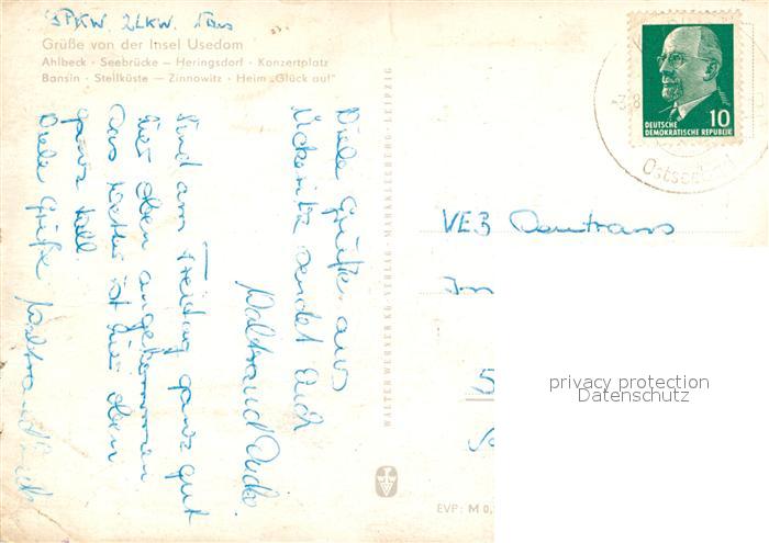 73302424 alte Postkarte Insel Usedom Ahlbeck Seebruecke Heringsdorf Konzertplatz Bansin Steilkueste Zinnowitz Heim Glueck auf postalisch gelaufen Erhaltung siehe scans [FriedD77] KatCode: 11110013059097