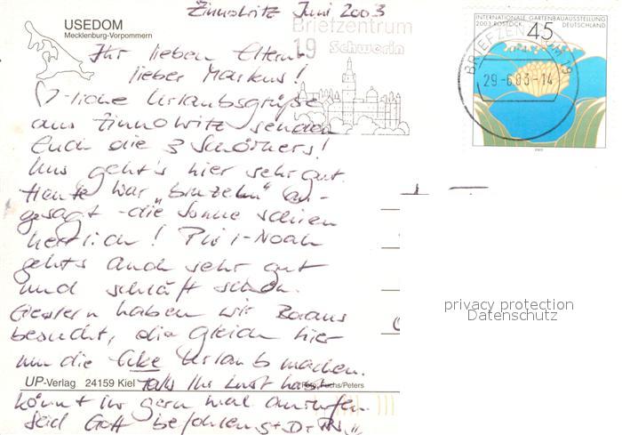72976138 alte Postkarte Insel Usedom Muehle Seebruecke Strand postalisch gelaufen Erhaltung siehe scans [LiesaD40] KatCode: 11110013059097