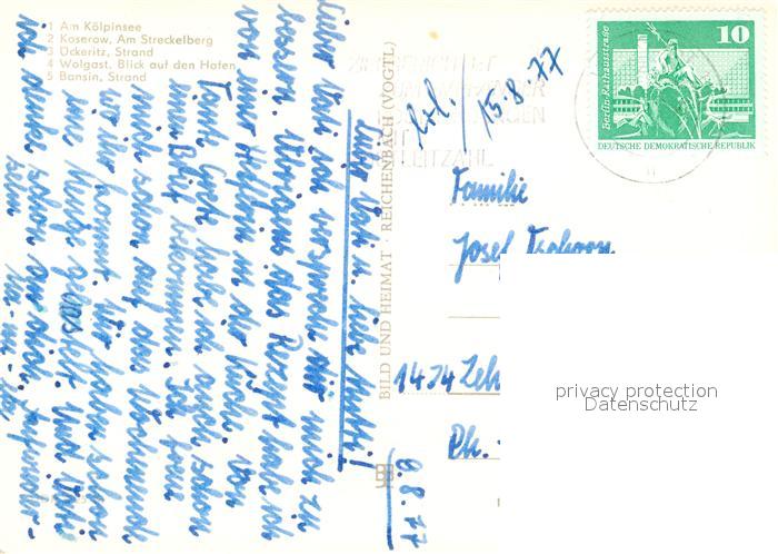 73045505 alte Postkarte Insel Usedom Strand Bansin ueckeritz Koelpinsee Wolgast Hafen postalisch gelaufen Erhaltung siehe scans [KathaD81] KatCode: 11110013059097