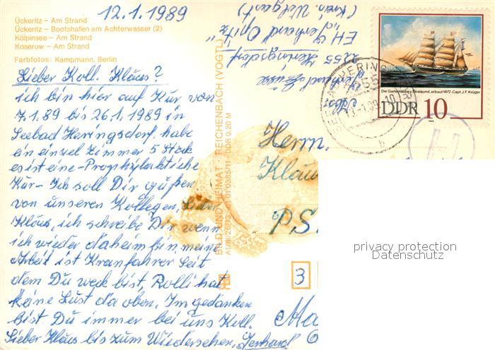73059425 alte Postkarte Insel Usedom ueckeritz Strand Bootshafen Achterwasser Koelpinsee Koserow postalisch gelaufen Erhaltung siehe scans [WerneD78] KatCode: 11110013059097