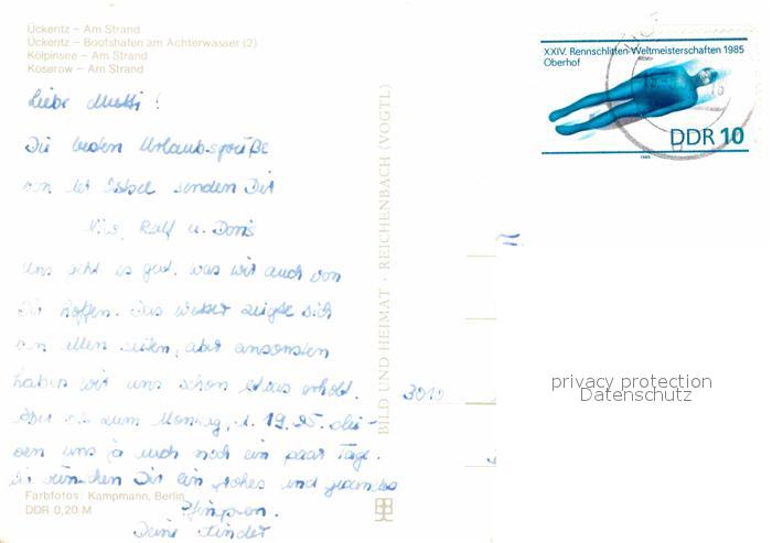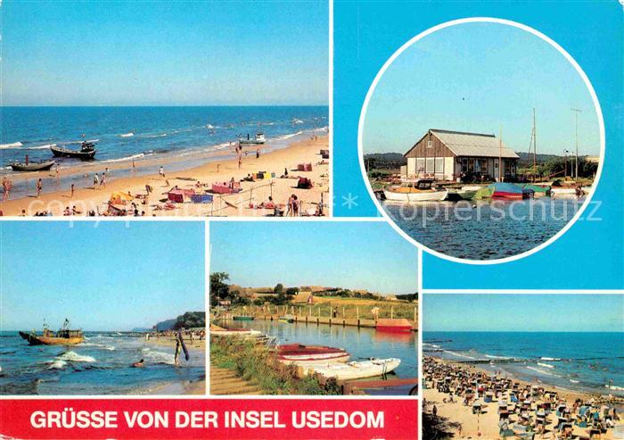 72616377 alte Postkarte Insel Usedom ueckeritz Strand Bootshafen am Achterwasser Koelpinsee Koserow postalisch gelaufen Erhaltung siehe scans [FriedD77] KatCode: 11110013059097