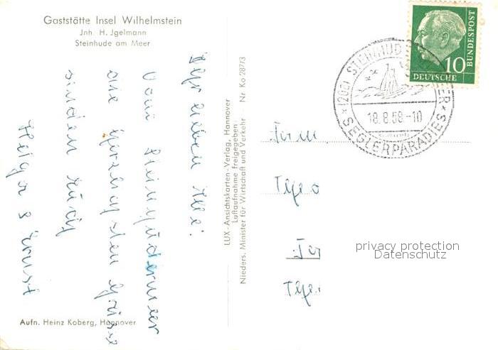 73167675 alte Postkarte Insel Wilhelmstein Gaststaette Steinhuder Meer Fliegeraufnahme postalisch gelaufen Erhaltung siehe scans [FriedD77] KatCode: 11110003241021