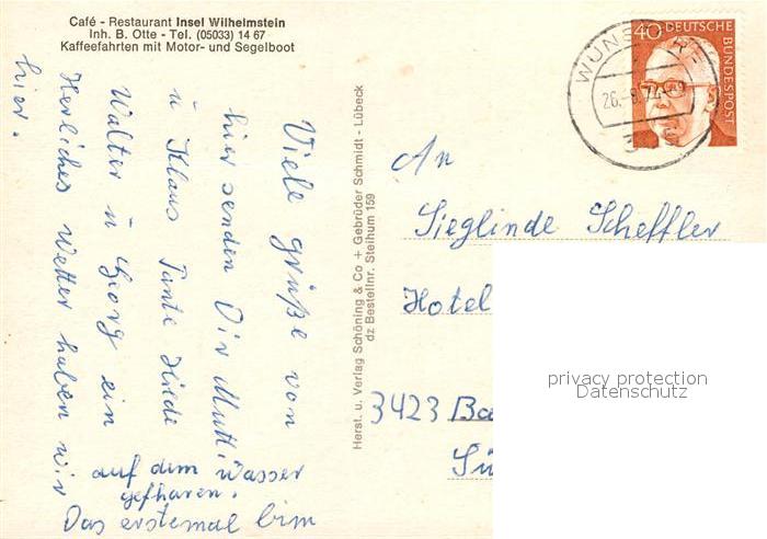 73126830 alte Postkarte Insel Wilhelmstein Steinhuder Meer Cafe Restaurant Segeln Moewe postalisch gelaufen Erhaltung siehe scans [FriedD77] KatCode: 11110003241021