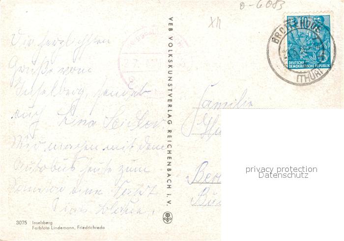 43372571 alte Postkarte Inselsberg Schmalkalden Berggasthof St?hr postalisch gelaufen Erhaltung siehe scans [LiesaD40] KatCode: 11110016066063
