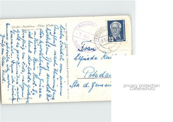 71985875 alte Postkarte Inselsberg Schmalkalden Berggasthof Stoehr postalisch gelaufen KatCode: 11110016066063
