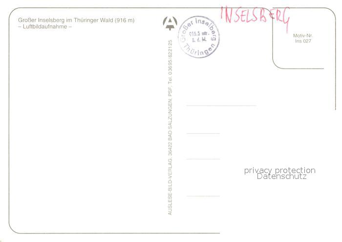 73090389 Inselsberg Schmalkalden Fliegeraufnahme postalisch nicht gelaufen Erhaltung siehe scans [NatalD47] KatCode: 11110016066063