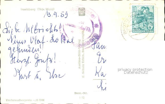 71996013 alte Postkarte Inselsberg Schmalkalden HO Hotel postalisch gelaufen Erhaltung siehe scans KatCode: 11110016066063