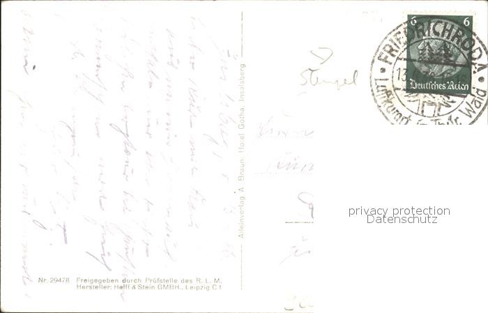 31910379 alte Postkarte Inselsberg Schmalkalden Hotel Gotha Fliegeraufnahme postalisch gelaufen Erhaltung siehe scans KatCode: 11110016066063