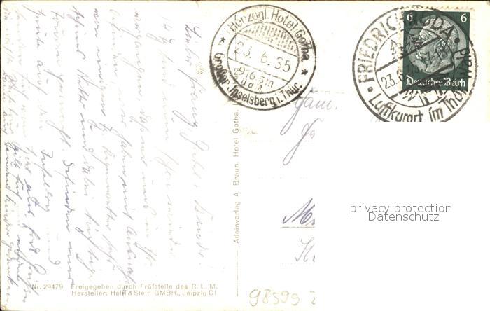 31917821 alte Postkarte Inselsberg Schmalkalden Hotel Gotha Fliegeraufnahme postalisch gelaufen KatCode: 11110016066063