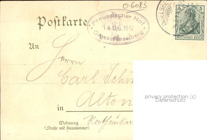 41480517 Inselsberg Schmalkalden Preussischer Gasthof Aussichtsturm postalisch nicht gelaufen Erhaltung siehe scans Alte Ansichtskarte Postkarte hz_L Katcode 11110016066063