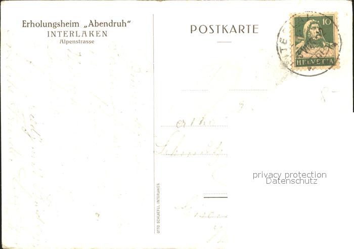 11640067 Interlaken BE Erholungsheim Abendruh Kuenstlerkarte E.B. postalisch gelaufen Erhaltung siehe scans Alte Ansichtskarte Postkarte alte Postkarte Paol Katcode 11470060175264