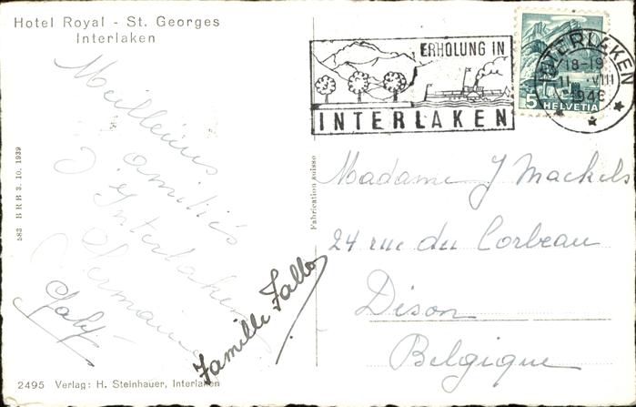 11113700 alte Postkarte Interlaken BE Hotel Royal postalisch gelaufen KatCode: 11470060175264