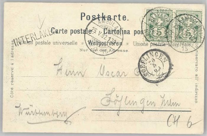 10543565 alte Postkarte Interlaken BE Interlaken Jungfrau Kuenstler C. Steinmann postalisch gelaufen KatCode: 11470060175264