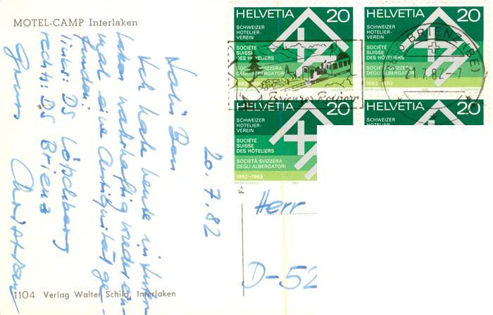 13940642 alte Postkarte Interlaken BE Motel Camp Interlaken postalisch gelaufen Erhaltung siehe scans [WerneD78] KatCode: 11470060175264