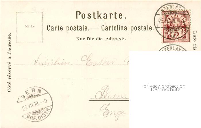 13797495 alte Postkarte Interlaken BE Motiv mit Berner Alpen Kuenstlerkarte postalisch gelaufen Erhaltung siehe scans [FriedD77] KatCode: 11470060175264