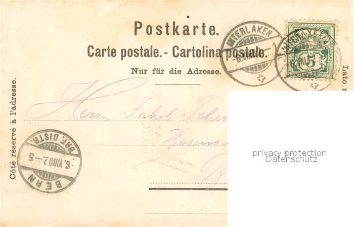 13736085 alte Postkarte Interlaken BE Panorama Gebietskarte postalisch gelaufen Erhaltung siehe scans [WerneD78] KatCode: 11470060175264