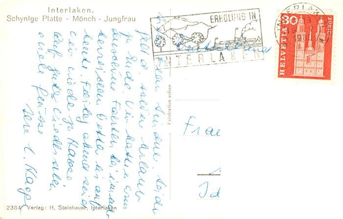 13949760 alte Postkarte Interlaken BE Panorama Schynige Platte Moench Jungfrau Berner Alpen postalisch gelaufen Erhaltung siehe scans [FriedD77] KatCode: 11470060175264