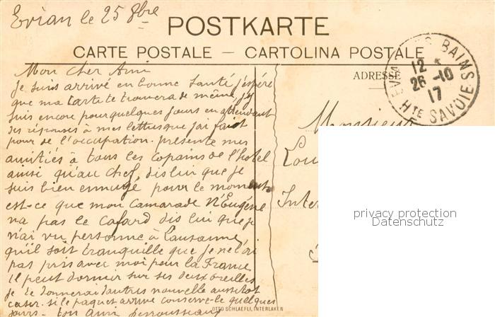 13789991 alte Postkarte Interlaken BE Union-Hotel Pension-Reber Aussenansicht postalisch gelaufen Erhaltung siehe scans [LiesaD40] KatCode: 11470060175264