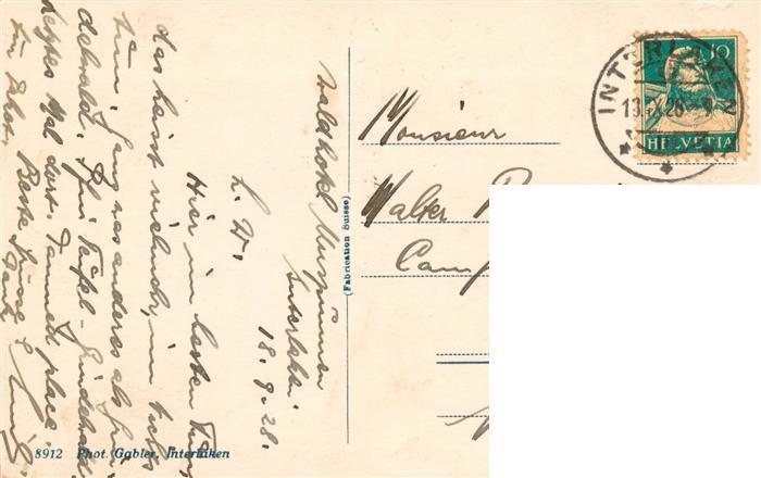 13921397 alte Postkarte Interlaken BE Waldhotel am Rugenpark Terrasse postalisch gelaufen Erhaltung siehe scans [FriedD77] KatCode: 11470060175264