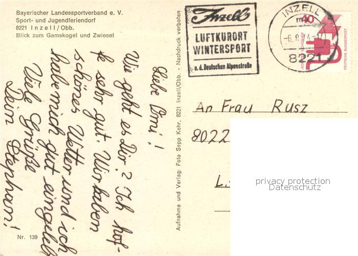 73633485 alte Postkarte Inzell Bayer Landessportverband Sport und Jugendferiendorf mit Gamskogel und Zwiesel postalisch gelaufen Erhaltung siehe scans [WerneD78] KatCode: 11110009189124