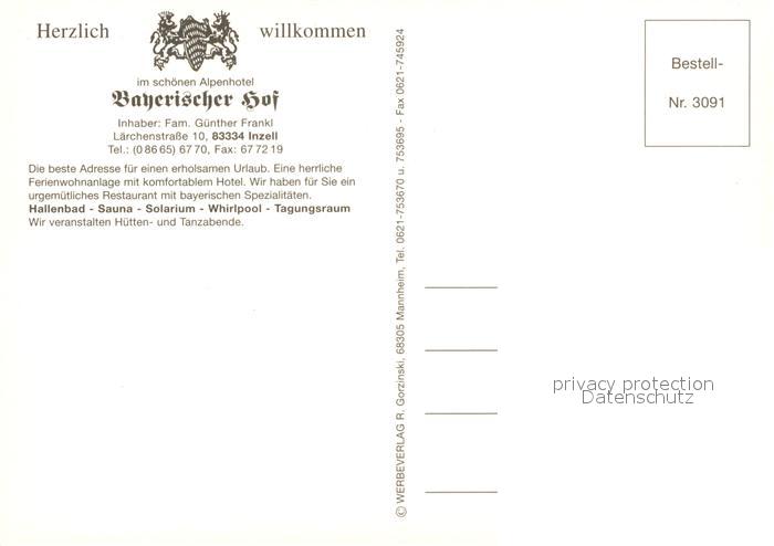 73174013 Inzell Bayerischer Hof postalisch nicht gelaufen Erhaltung siehe scans [NatalD47] KatCode: 11110009189124