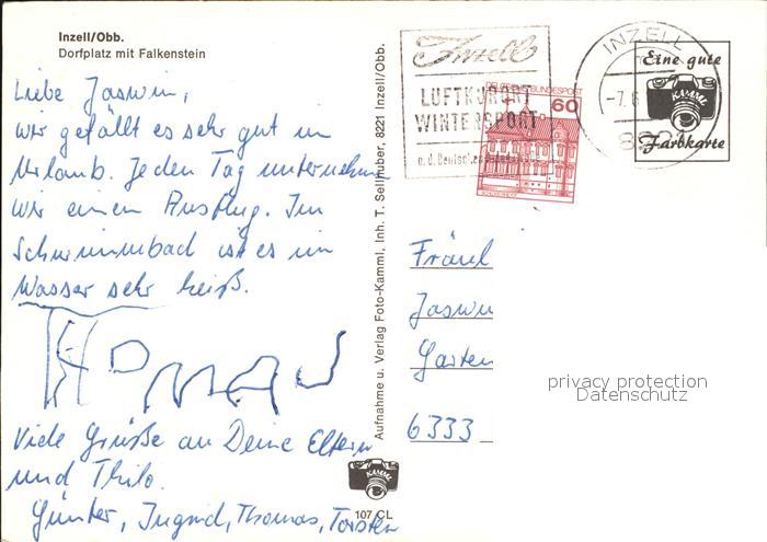 alte Postkarte Inzell Dorfplatz mit Falkenstein postalisch gelaufen Erhaltung siehe scans